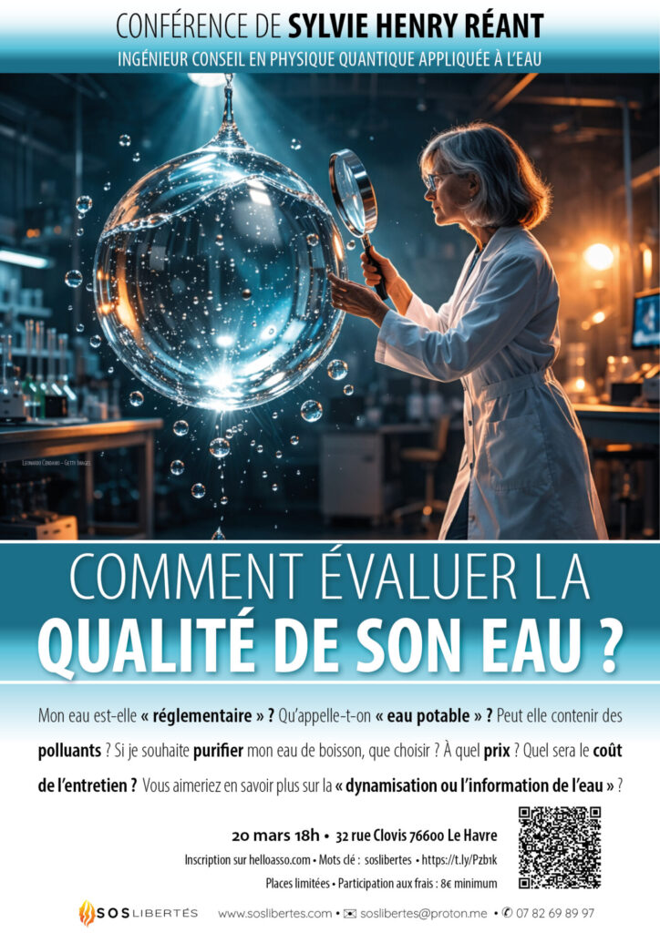 Le 20 mars pro­chain confé­rence de Sylvie Henry Réant est ingé­nieur chi­miste et bio­lo­giste. Elle a été for­mée dans le labo­ra­toire de Jacques Benveniste durant son mas­ter de bio­lo­gie. de 2010 à 2014 elle a été for­mée par marc hen­ry à la théo­rie quan­tique de s domaines de cohé­rence d e l’eau et à une vision quan­tique du fonc­tion­ne­ment. Depuis 2015 Sylvie Henry Réant prend le relai de Marc Henry, qui s’o­riente davan­tage sur la recherche aca­dé­mique, et orga­nise des cours de for­ma­tion pro­fes­sion­nelle sur l’ap­pli­ca­tion métier de la théo­rie quan­tique des domaine de cohé­rence de l’eau. Les trai­te­ments phy­sique de l’eau sont une appli­ca­tion pra­tique de la théo­rie. Elle est conseillère scien­ti­fique à l’ins­ti­tut Marc Henry.